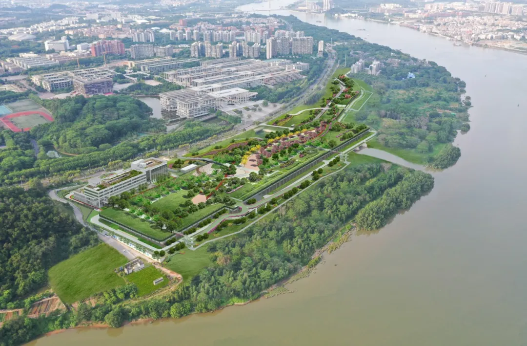 大学城南停车场位于番禺区,主要承担线路列车的停放功能,占地13.44公顷,设30列位停车列检库,建筑面积6.56万平方米。项目通过上盖景观优化设计,打造8.42万平方米的盖板空间,显著提升了珠江滨水城市空间品质。